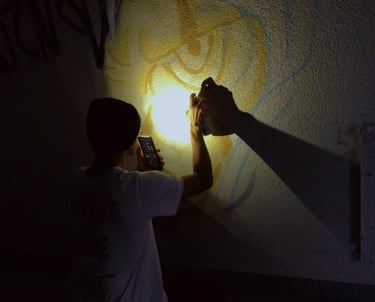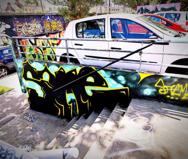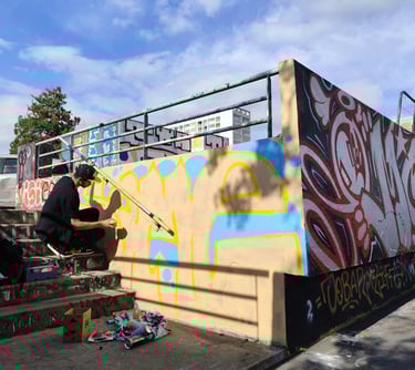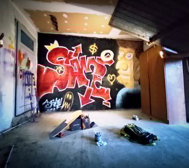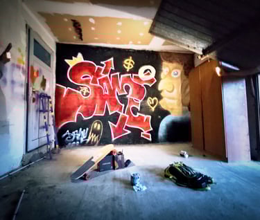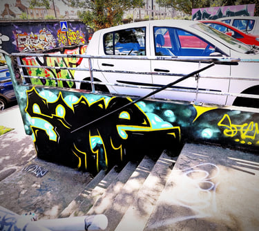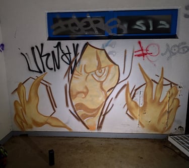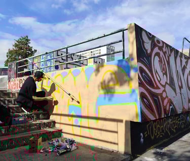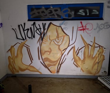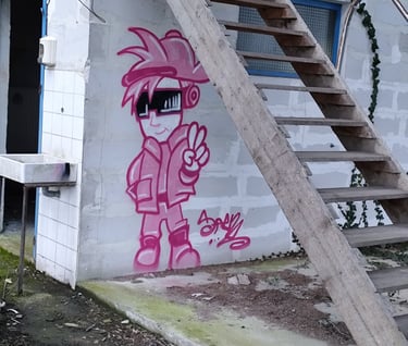 L'expression de ma créativité passe aussi par la peinture, étant quelqu'un qui aime voir grand, je m'exprime sur des supports tel que : des murs, des toiles ou des skates